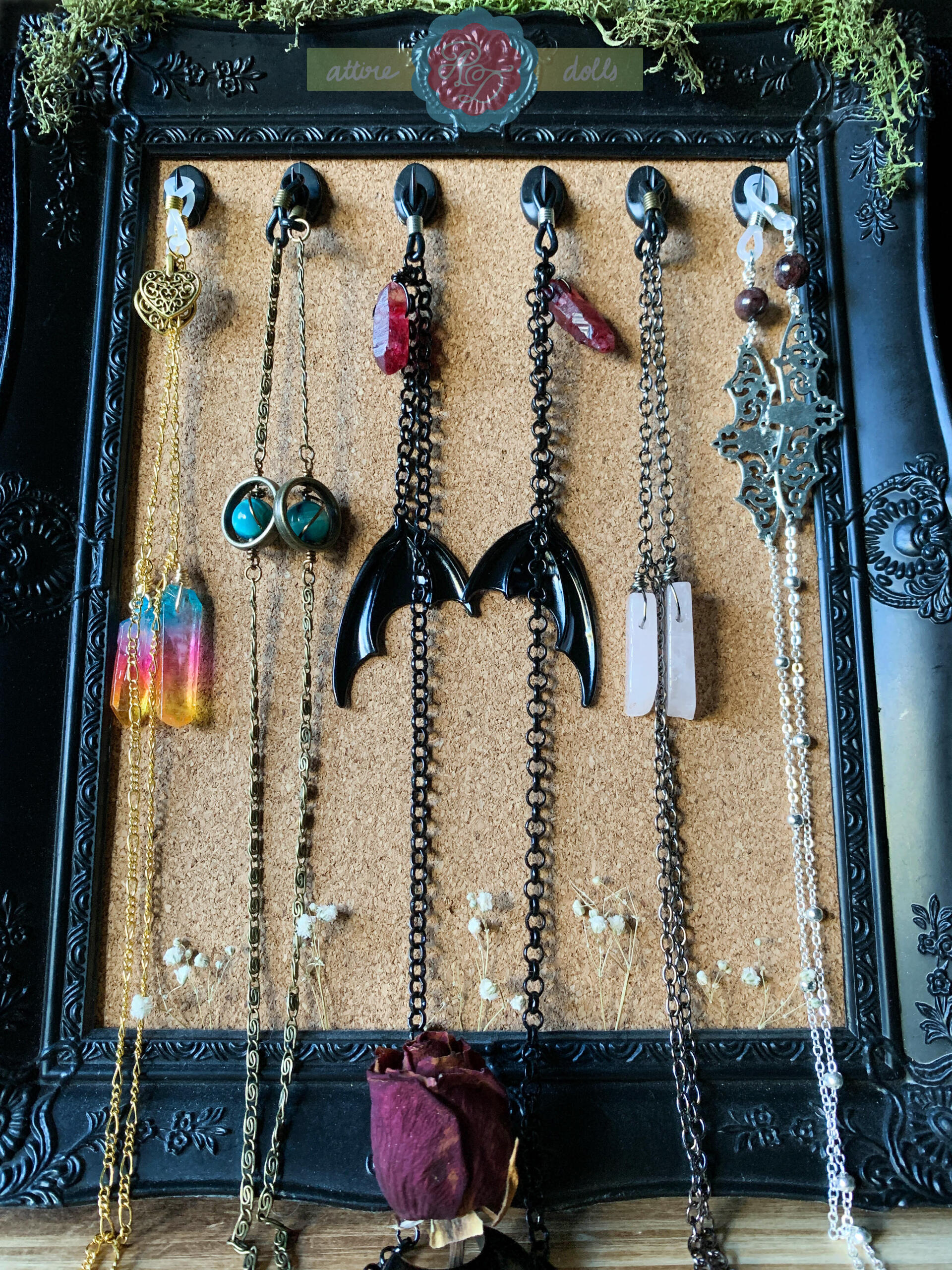 Below is a variety of jewellery, accessories, and small home decor that cover original, cosplay, and LGBTQIA+ that has been lovingly handmade products that I bring to events.To view my range of custom work, please head to the Custom Work Portfolio.